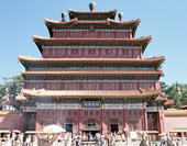Nowadays, after plenty of restoration, Chengde can boast not only the grandeur of its surrounding mountains, but also the distinctive charm of refurnished artifacts. The city covers area of 39, 500 square kilometers. A little more than 1/3 of the population belongs to ethnic groups including Manchurians, Mongolians, Hui, Koreans, etc. Chengde has advantaged and abundant travel resources. There are the the Mulan Paddock, world's largest royal hunting; the Eight Temples, the greatest royal temple group; the Kwan-yin Bodhisattva with a thousand hands and a thousand eyes, and the shortest river-Hot River.