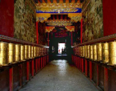 There are large collections of historical cultural objects in the monastery, such as appointment letters, jade seals, crown, gown given to the officials of local Sakya admin-sitration by the central government of Yuan Dynasty, statues, religious articles and porcelains from Sung and Yuan dynasties as well as precious mural paintings and etc. And the buildings contain thousands of statues, paintings, murals, stupas, mandalas, and other holy objects, as well as libraries of scriptures in Tibetan, Chinese, Mongolian, and Sanskrit piled from floor to ceiling. Among the holy objects in the monastery are the lifesize statue of Manjushri that spoke to Sakya Pandita to assist him during a famous debate; a small statue of Tara that was Atisha’s personal meditation object; and the conch shell blown by the Buddha’s disciples to summon monks to his teachings. Sakya Monastery became a citadel of learning and the fount from which the ten major and minor sciences were introduced to Tibet from India.
